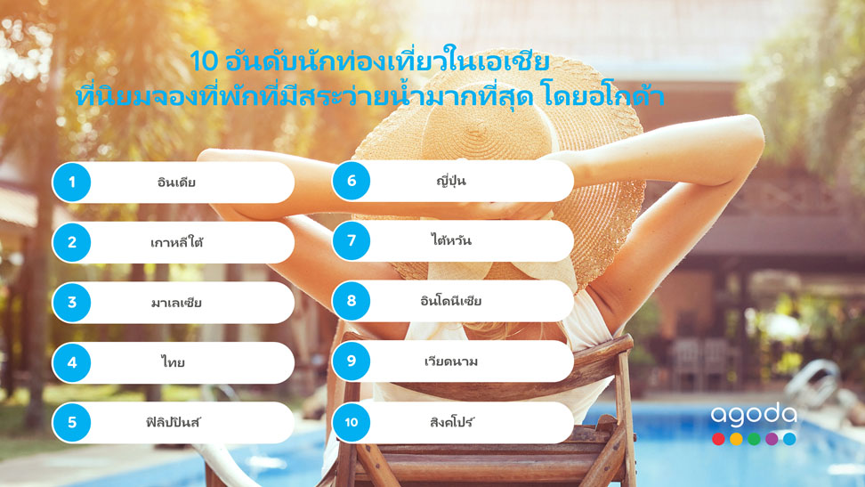 'อโกด้า'ชี้นักท่องเที่ยวไทยนิยมจองที่พัก เน้นมีสระว่ายน้ำติดท็อป5ในเอเชีย