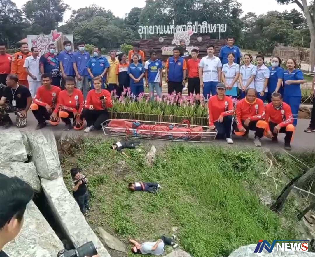 'เทพสถิต'ซ้อมแผนเผชิญเหตุตกหน้าผา ของนักท่องเที่ยวเสมือนจริงที่ป่าหินงาม