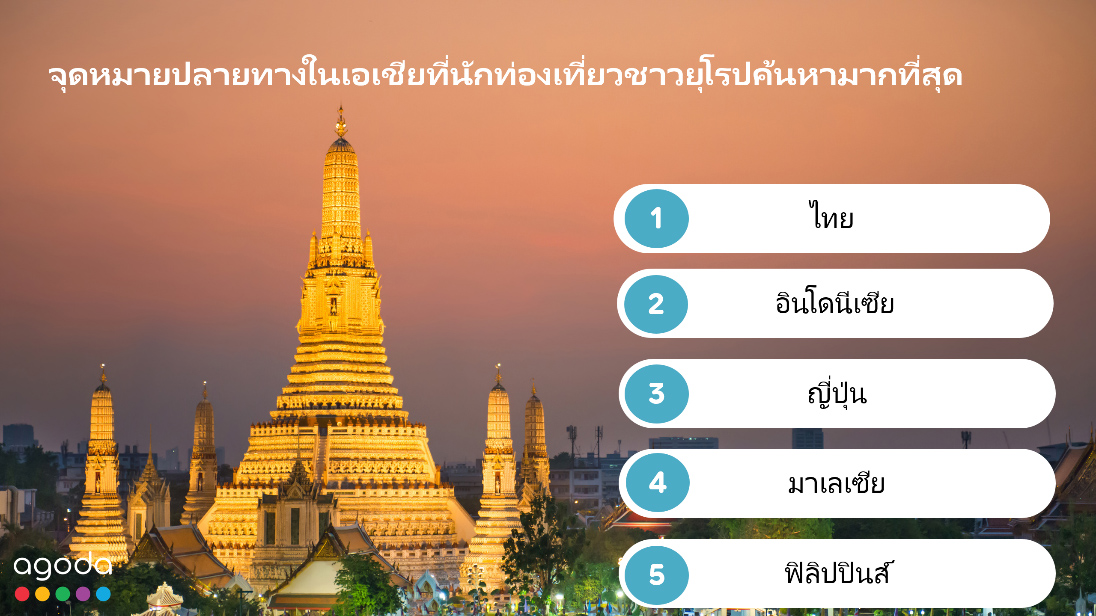 อโกด้าชี้นทท.ยุโรปหนีร้อนมาเที่ยวเอเชีย 'ไทย'เป็นเมืองยอดนิยมอันดับ1ในเอเชีย