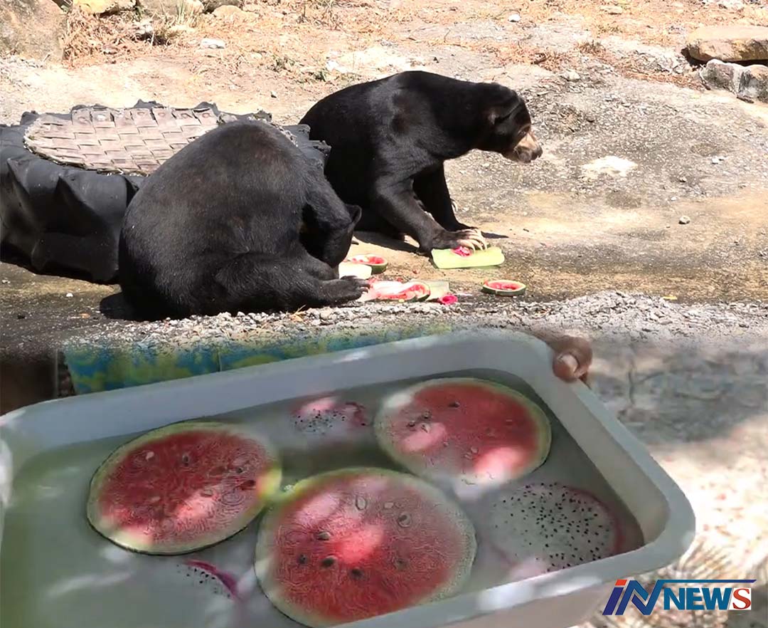 'หมีร้อน'สวนสัตว์สงขลาจัดผลไม้แช่แข็ง นำมาให้หมีกินแก้ร้อนสนุกทั้งกินทั้งเล่น