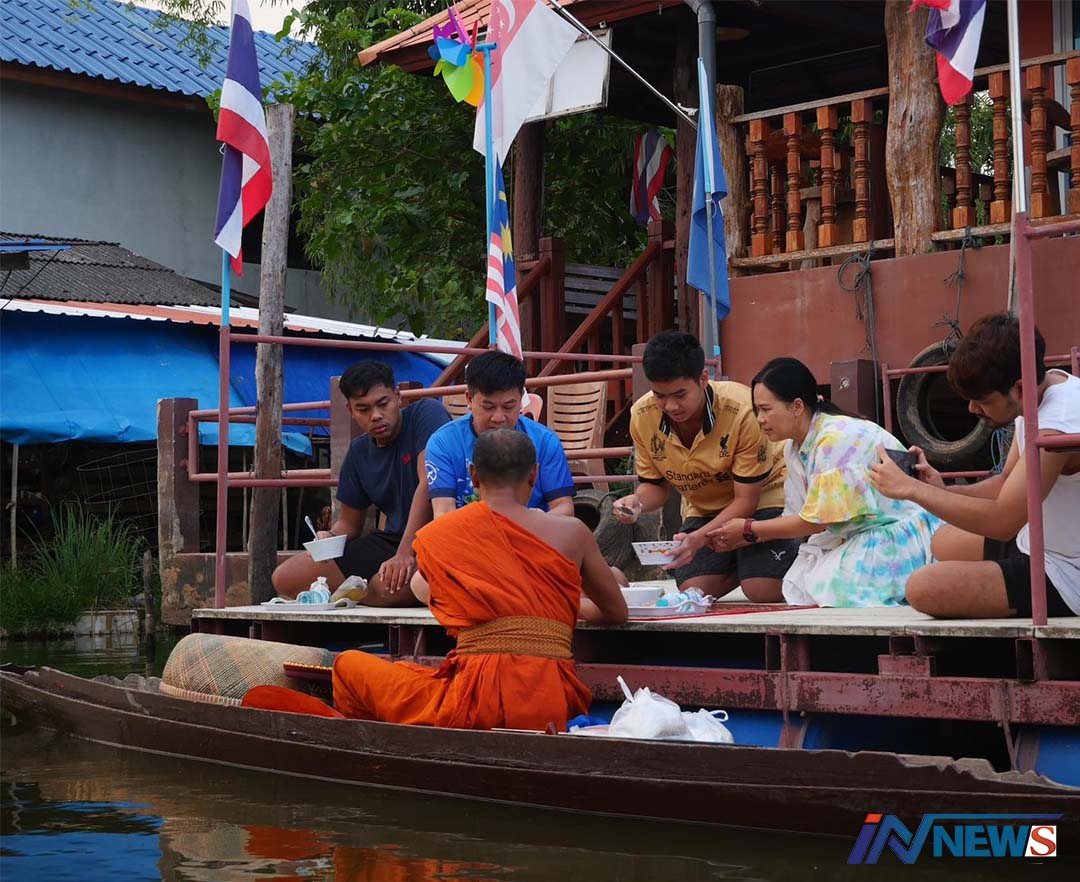 นักวิจัยฯพื้นที่นำสื่อ-นักท่องเที่ยวนั่งเรือ ถ่ายภาพวิถีชีวิตพระบิณฑบาตรทางน้ำ