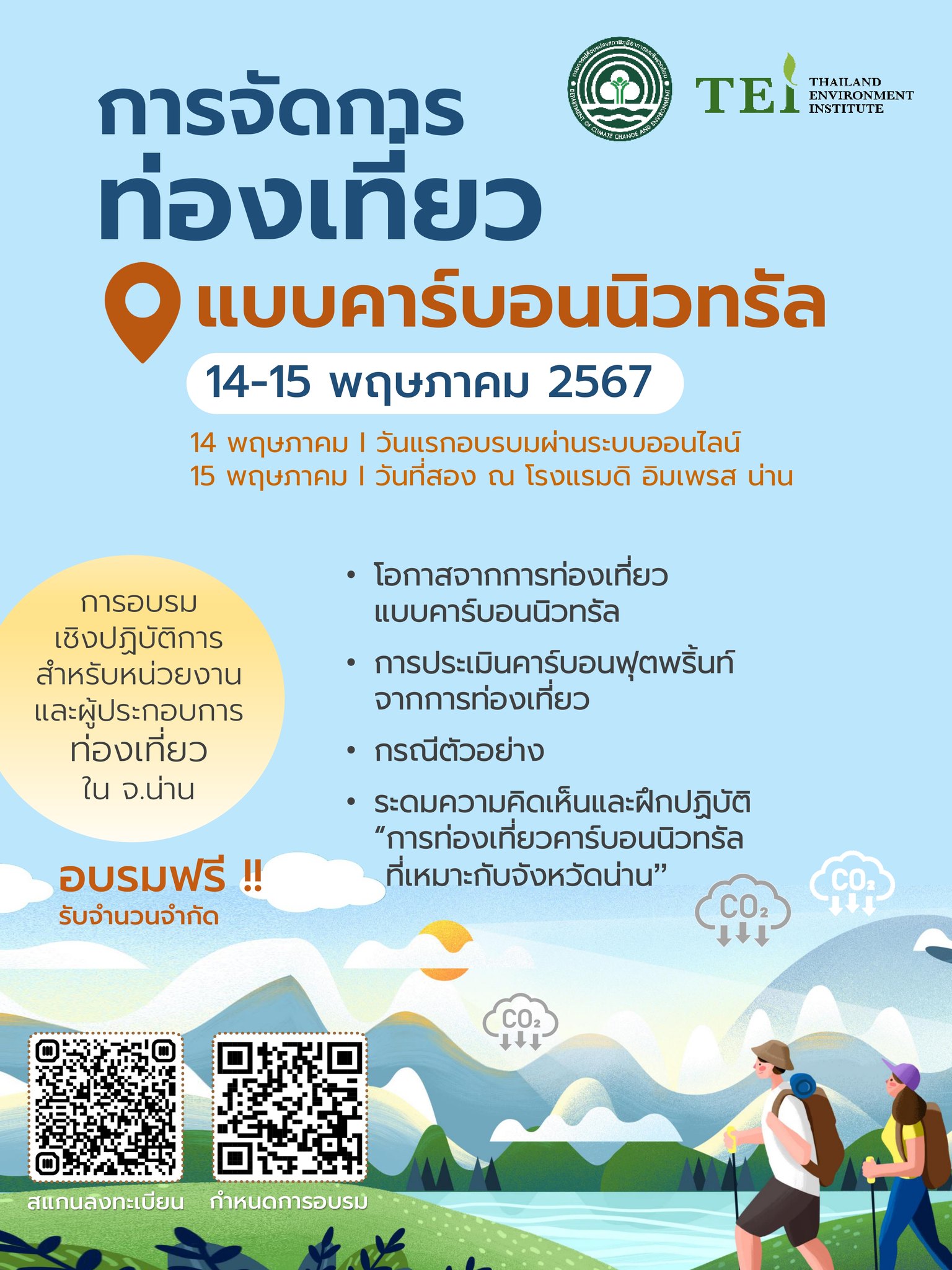 ธุรกิจน่านมีเฮ!ทีอีไอจับมือกรมโลกร้อนฯ อบรมจัดการท่องเที่ยว'คาร์บอนนิวทรัล'