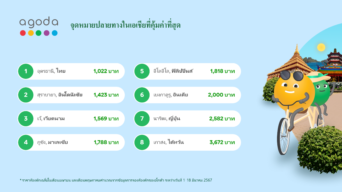 ข้อมูลอโกด้าชี้ อุดรธานีเป็นเมืองท่องเที่ยวที่คุ้มค่าที่สุดในไทย