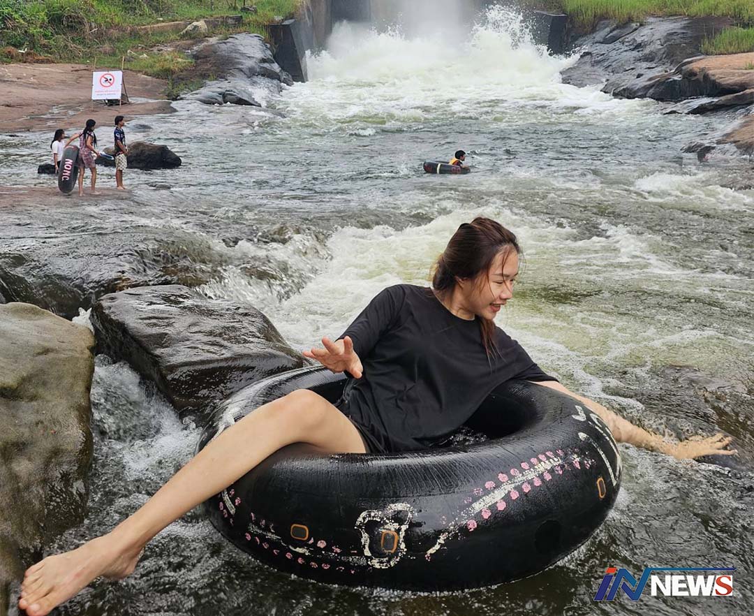 กาฬสินธุ์-สภาพอากาศในพื้นที่กาฬสินธุ์มีความร้อนเพิ่มสูงมากยิ่งขึ้น ประชาชนลงเล่นน้ำบริเวณจุดผันน้ำเขื่อนลำปาวเพื่อคลสยร้...