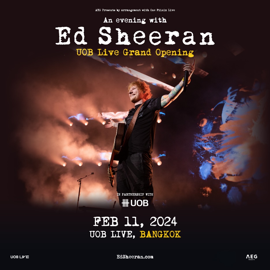 ขายบัตรแล้ว!คอนเสิร์ต'เอ็ด ชีแรน'เปิดตัว UOB LIVEศูนย์รวมการจัดงานล้ำสมัย