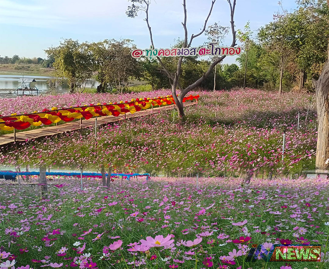 ชัยภูมิชวนเที่ยวทุ่งคอสมอสชมตะวันแดง ยามแลงสามดวงริมเขื่อนห้วยทราย