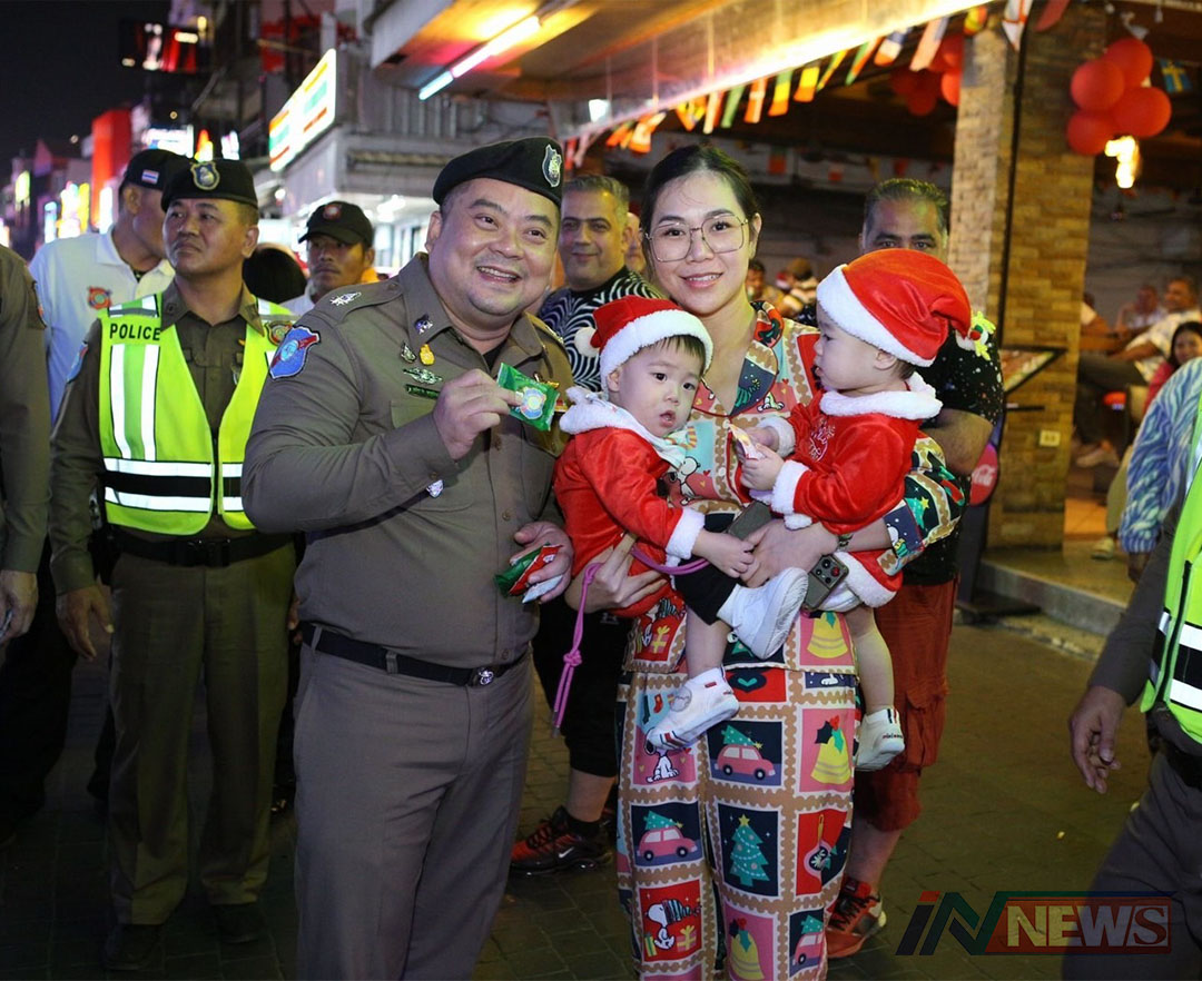 ตร.ท่องเที่ยวเมืองพัทยาเดินแจกคุกกี้ดูแล ความปลอดภัยนทท.คืนคริสต์มาส