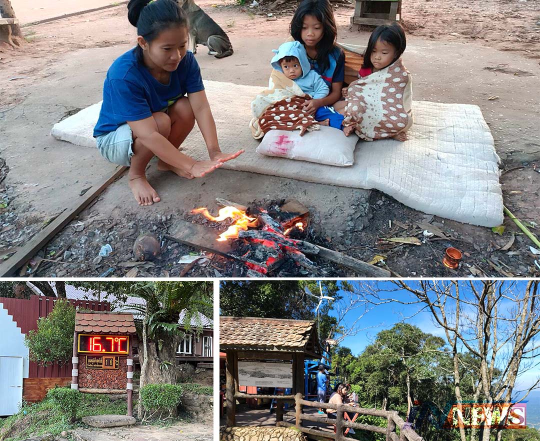 ปราจีนบุรี-แม่ลูก4ทนหนาวไม่ไหวพาลูกก่อไฟผิงขณะบนเขาใหญ่ 16องศาเซลเซียสเย็นสบายในธรรมชาติราวกับในห้องแอร์ เข้าสู่ช่วงไฮซี...