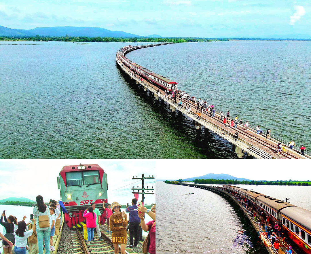 แห่นั่งรถไฟลอยน้ำชมเขื่อนป่าสักชลสิทธิ์ นักท่องเที่ยวกว่า1.7พันคนดูน้ำเต็มเขื่อน