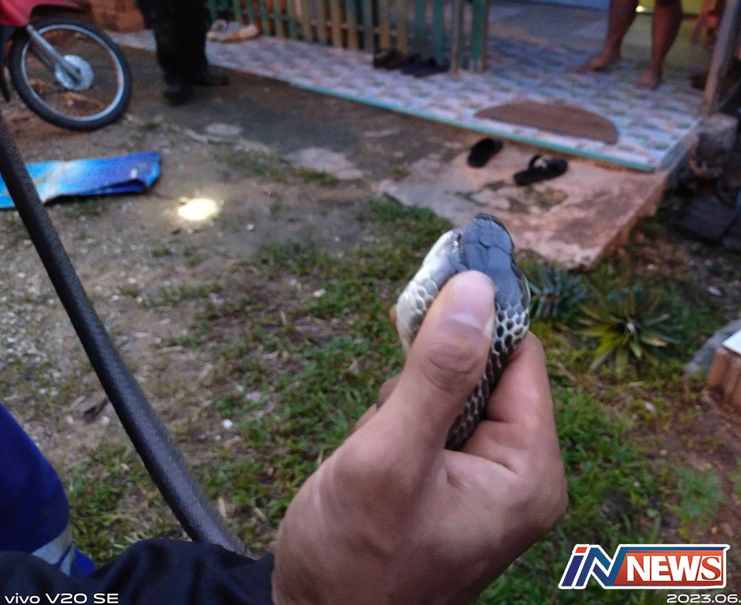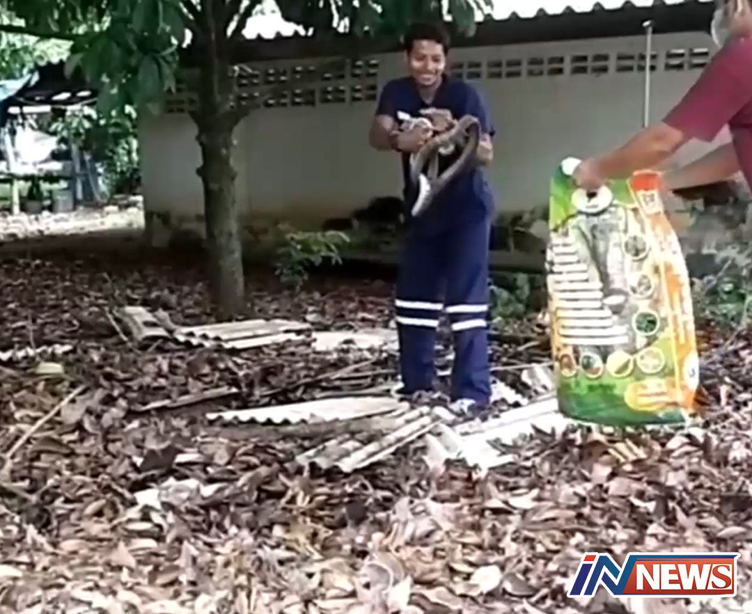 สงขลา-จับงู 2 ผัว เมีย ซุกใต้กระเบื้องหหลังคาเก่า เป็นงูสิงหางลาย แห่ดูบ้านเลขที่ตีเป็นหวย