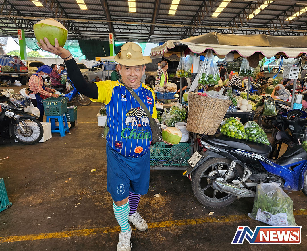 พ่อค้าโชว์สเต็ปเต้นพร้อมปลอกมะพร้าวสร้างจุดเด่นเพิ่มยอดขาย