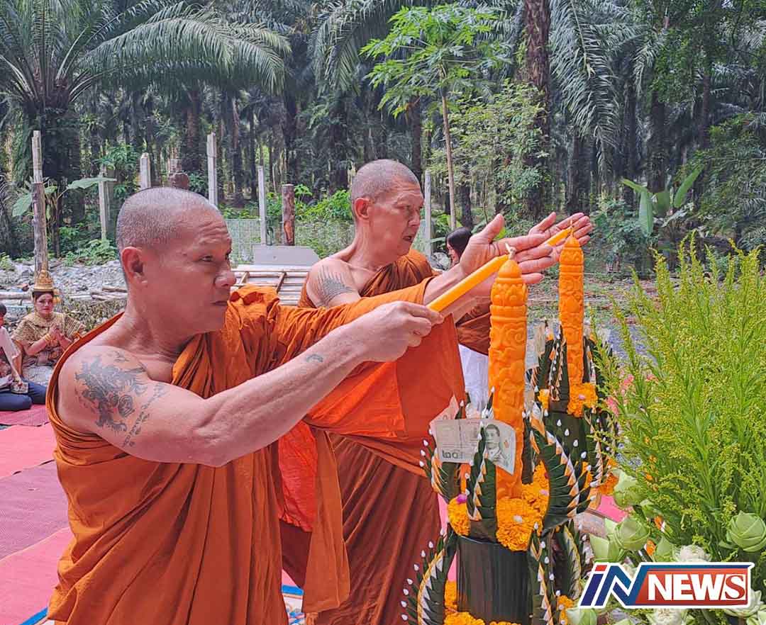 พังงา-ที่สำนักสงฆ์ถ้ำพญานาคราช ต.ถ้ำทองหลาง มีการประกอบพิธีบวงสรวงอัญเชิญรูปปั้นองค์ตา และองค์ยาย ขึ้นไปประดิษฐานบนถ้ำ ม...