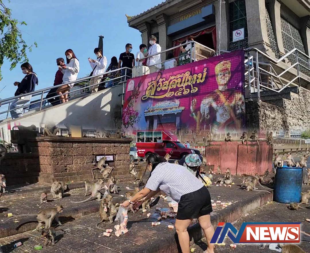ลพบุรีคึกคักปชช.ทำบุญรับวันขึ้นปีใหม่ ไหว้สิ่งศักดิ์สิทธิ์-เลี้ยงอาหารลิงคึกคัก
