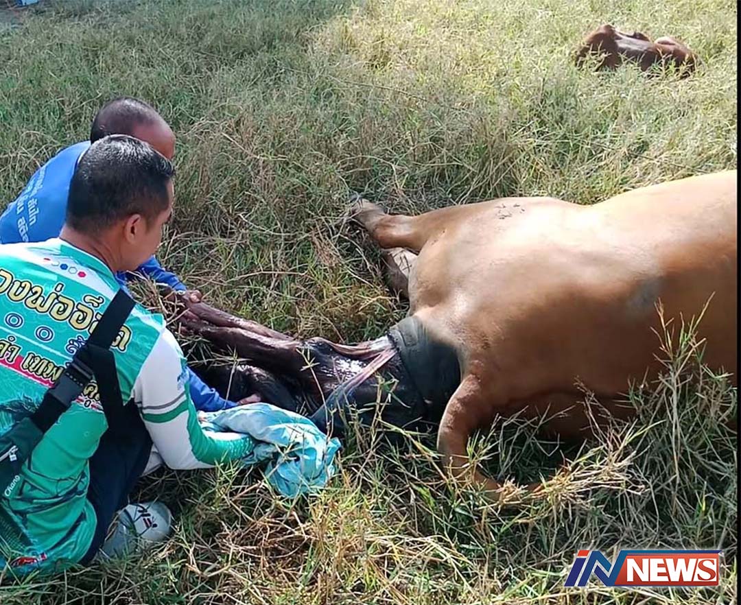 เจ้าของวัวลุ้น!ทำคลอดแม่วัวรับวันปีใหม่ ได้ลูกวัวตัวเมียขนสีแทนน้ำตาลเข้ม