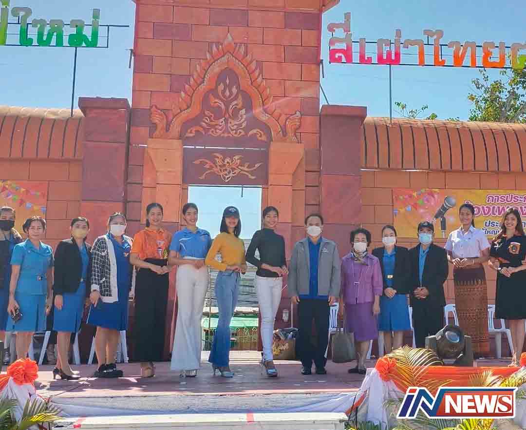 ศรีสะเกษ-ที่เวทีกลางงานเทศกาลปีใหม่สี่เผ่าไทยศรีสะเกษ สาวงามธิดาสี่เผ่าไทยศรีสะเกษ ขึ้นเวทีซ้อมใหญ่บนเวที ก่อนการประกวดจ...