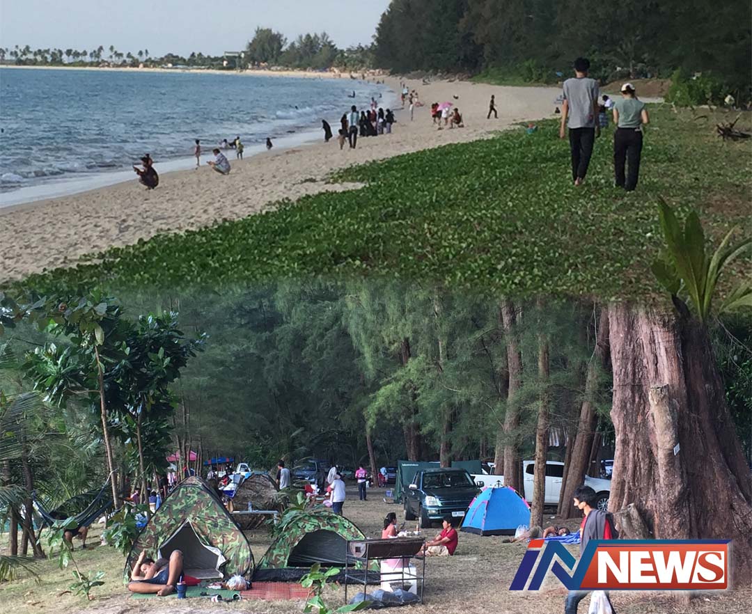 นักท่องเที่ยวชาวไทยแห่พาครอบครัวเที่ยว กางเต้นร์ริมหาดรอส่งแสงสุดท้ายปี65