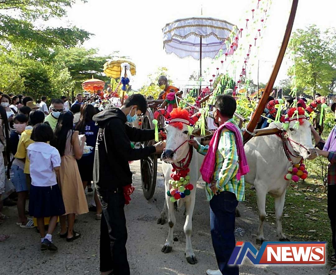 สุดเก๋.!!ชาวทุ่งหลวงรแห่ทำบุญตักบาตร บนหลังเกวียนต้อนรับปีใหม่