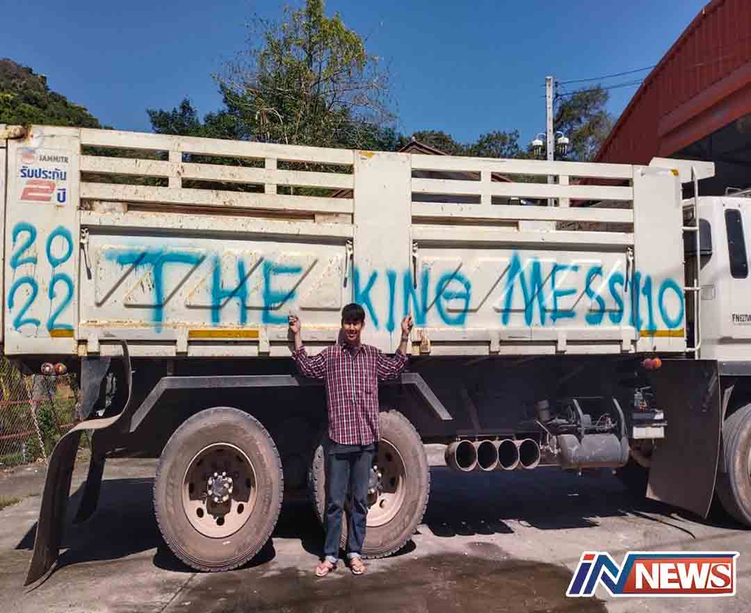 นครนายก-หนุ่มรถสิบล้อชื่นชอบเมสซี่ ฉลองชัยอาร์เจนตินาคว้าแชมป์บอลโลก พ่นสีสเปรย์ตัวรถ ชื่อ Messi 10 และ The King Messi 1...
