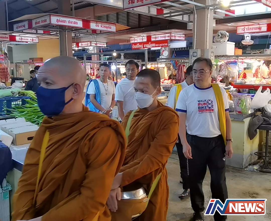 'ผู้ว่าฯสิงห์'สวมบทเด็กวัดพบปะประชาชน สะพายย่ามตามพระภิกษุออกรับบิณฑบาต