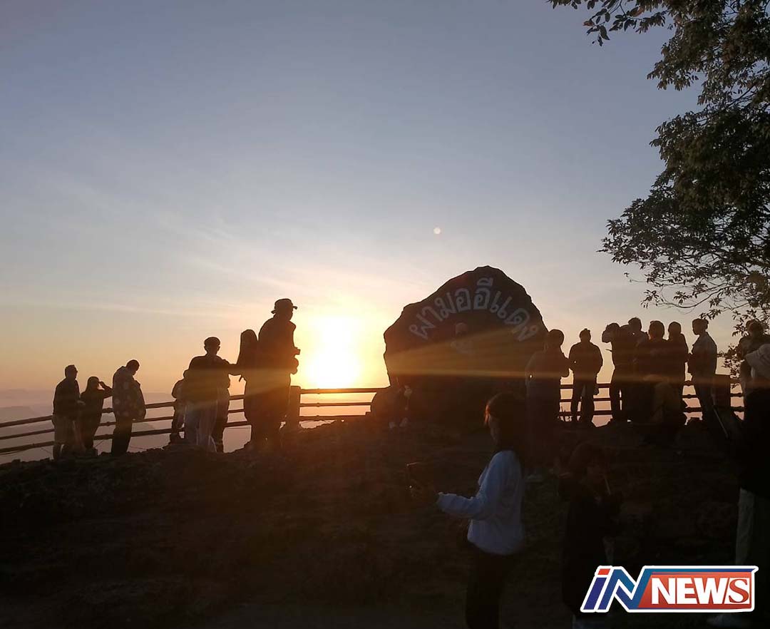 ศรีสะเกษ-อากาศเย็น อุณหภูมิลดลง นักเที่ยวแห่เที่ยวชมทิวทัศน์สัมผัสอากาศเย็นส่งท้ายหยุดยาวบนจุดชมวิวผามออีแดง อุทยานฯเขาพ...