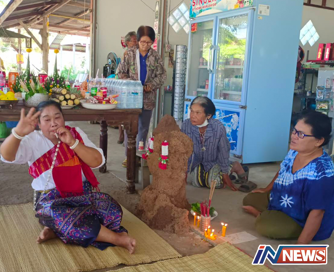 ชัยภูมิ คืบหน้าชาวบ้านนำเครื่องเซ่นไหว้ พญาปานแขน จอมปลวกที่โผล่หน้าร้านขายของชำพร้อมรำถวาย ขอโชคลาภ
