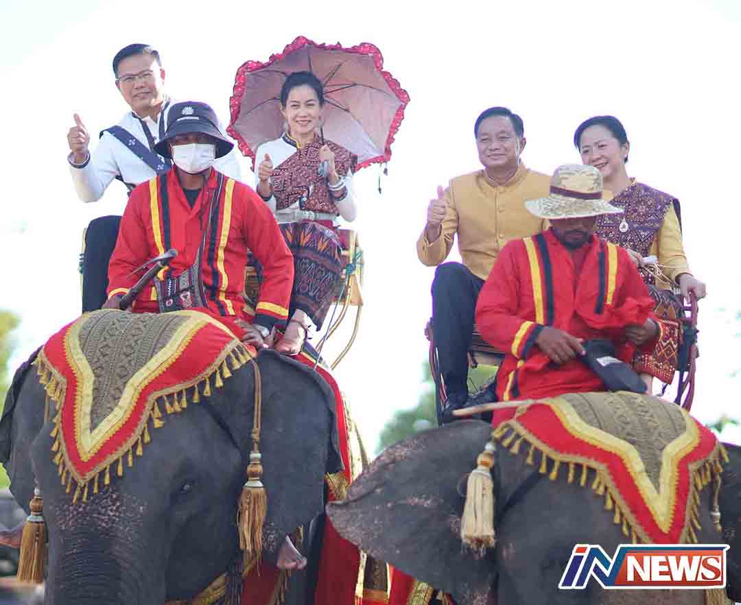 ผู้ว่าฯกาฬสินธุ์นั่งช้างกราบหลวงพ่อเจ็ดกษัตริย์เปิดงานประจำปี