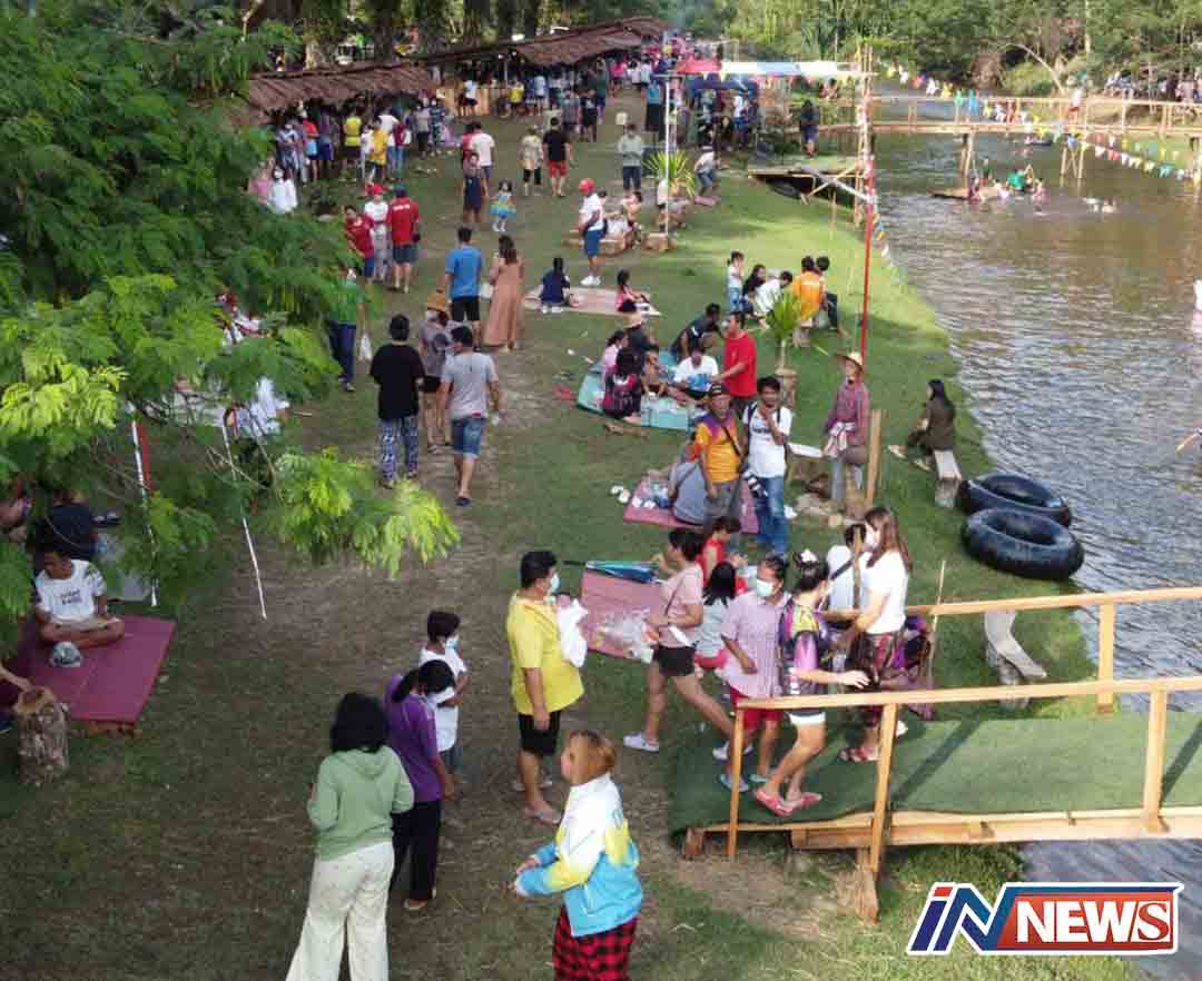 นักท่องเที่ยวจำนวนมากเที่ยวชมชิมช้อปที่หลาดชายคลอง