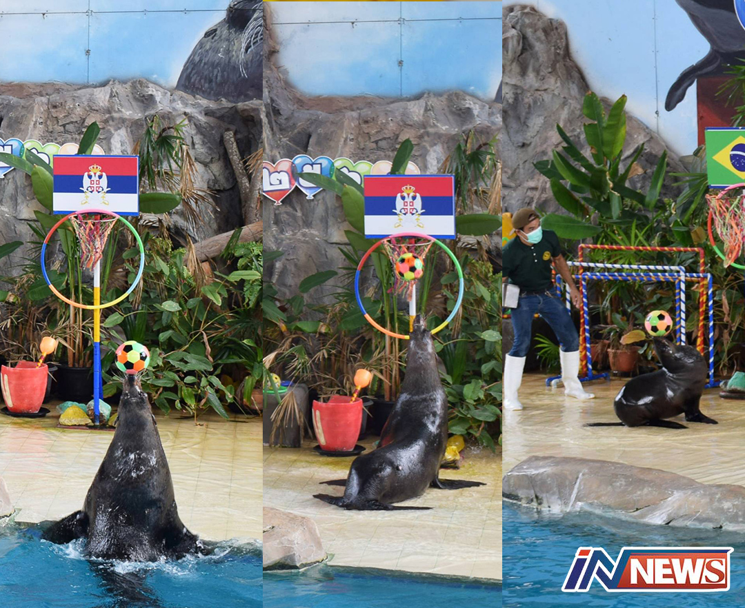 สวนสัตว์โคราชคึก'น้องก่อไผ่และพี่อ้วน' แมวน้ำแสนรู้โชว์ทายผลแข่งบอลโลก
