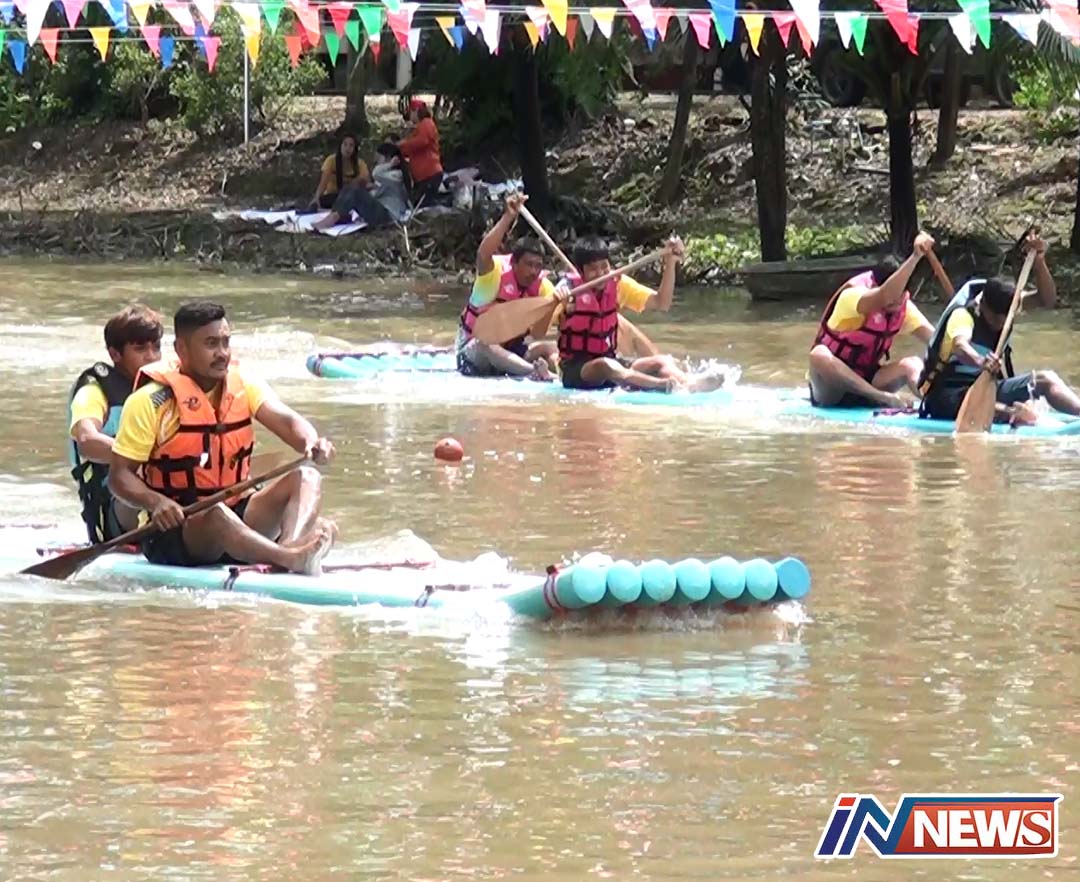 ชุมพร-เรียกเสียงฮา! ที่บริเวณสะพานคลองหนองหาน แข่งขันพายแพผลิตจากท่อพีวีซี หัวใบ้ท้ายบอดอัตลักษณ์ประจำถิ่น