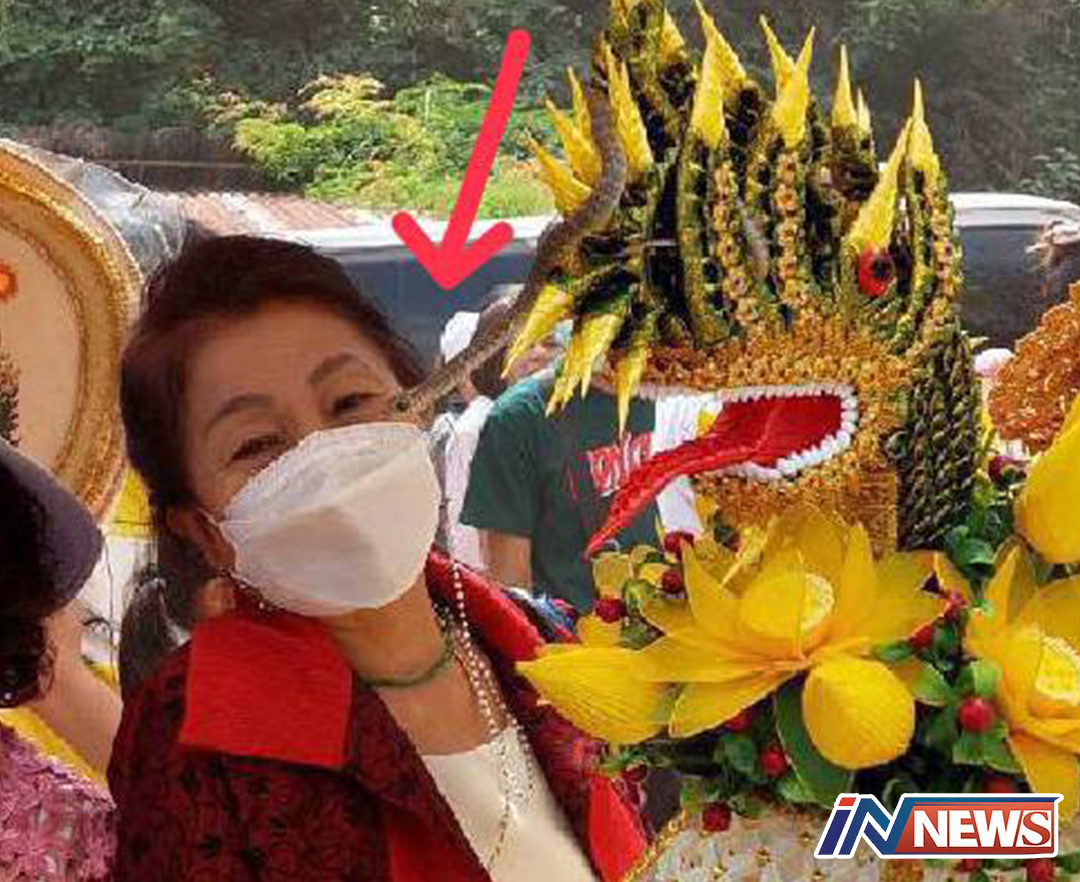 แปลก! 'งู'โผล่บนพานผ้าไตรทอดกฐิน พระ-โยมแตกฮือที่วัดเขาลูกช้างกบินทร์
