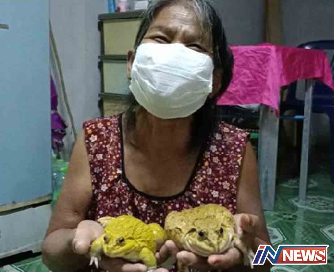 คุณยายชาวศรีมาหโพธิ์เลี้ยงกบสีทอง สองพี่น้องเป็นเพื่อนมาแล้วกว่า3ปี