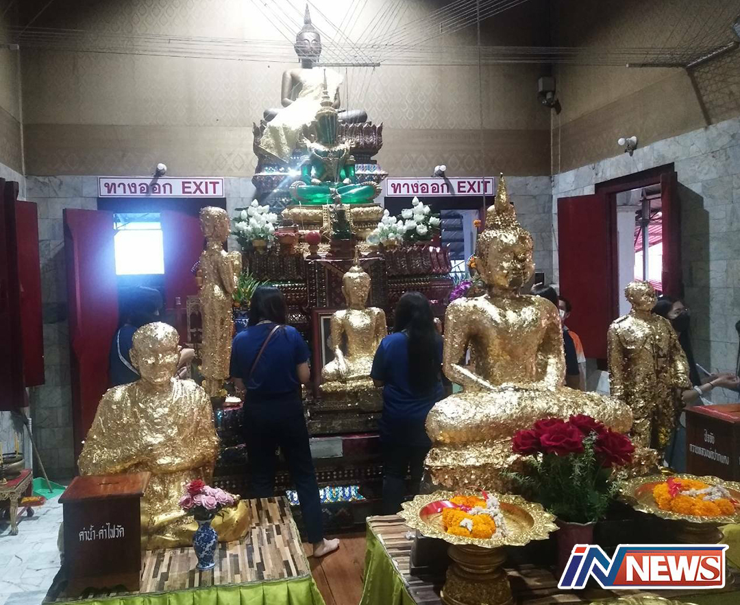 นักท่องเที่ยวเข้ากราบไหว้หลวงพ่อปากแดงพร้อมส่องเลขในอ่างน้ำมนต์