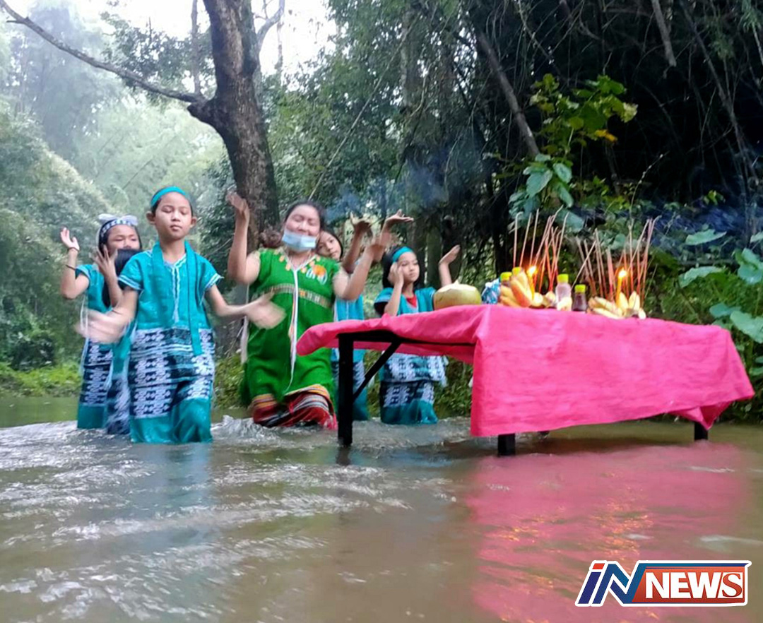 ถูกหวยรับเงินหลัก7จ้างวานคณะรำกะเหรี่ยงแก้บนกลางแม่น้ำภาชี