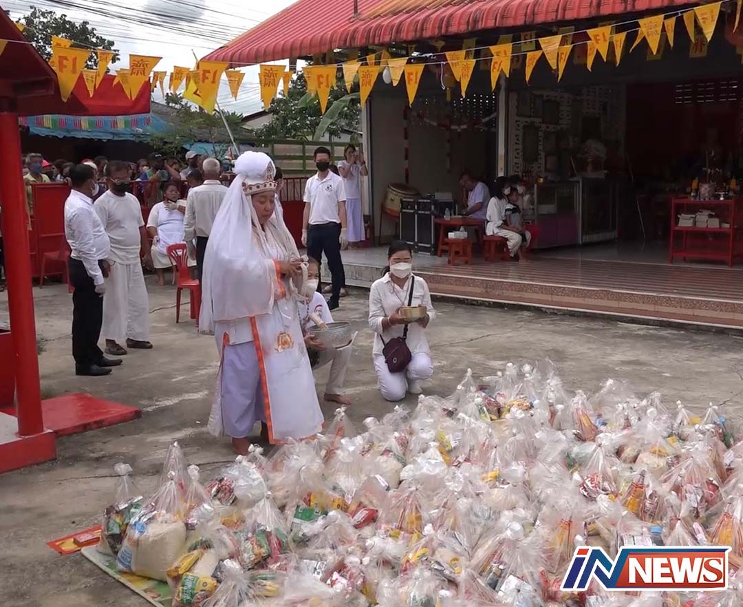 สงขลา-พระโพธิสัตว์กวนอิม(ตำหนักแม่โจ) แจกข้าวสารอาหารแห้ง ทั้งไทยพุทธ มุสลิม แห่รับ วันสุดท้ายของการกินเจ