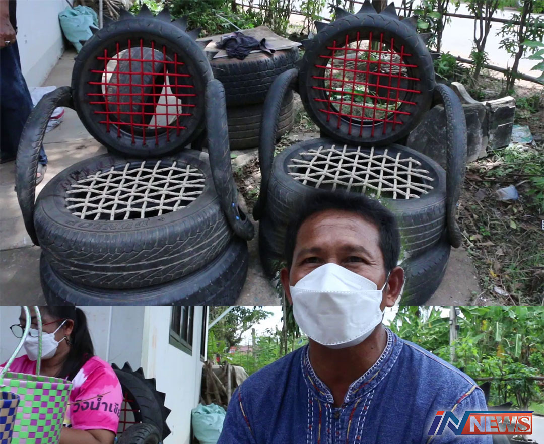 ผญบ.โคราชพาลูกบ้านนำขยะย่อยยาก ยางรถยนต์แปรรูปให้มีมูลค่าสร้างรายได้
