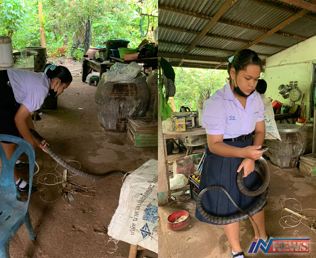 กระหึ่ม!!นักเรียนหญิงวัย17ปี'จิตอาสา' โชว์จับงูมือเปล่ายันฝึกฝนจากร่วมกตัญญู