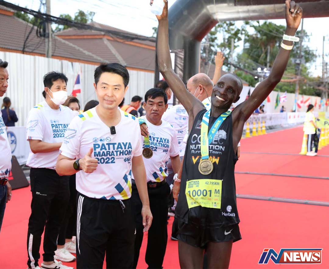 พัทยา-ปิดฉากการแข่งขันพัทยามาราธอน 2022 นักวิ่งน่องเหล็กชาวเคนย่ากอดคอซิวแชมป์ฟูลมาราธอน ชาย และฮาล์ฟมาราธอน ชาย