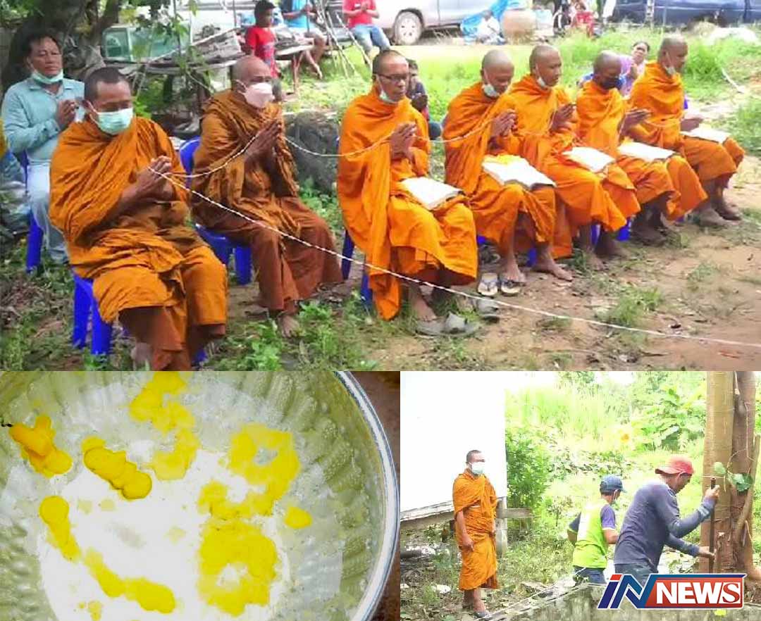 พิธีสวดถอดถอนต้นโพธิ์ชาวบ้านแห่ร่วม ส่องเลขเด็ดขันน้ำมนต์เห็นกันจะจะ
