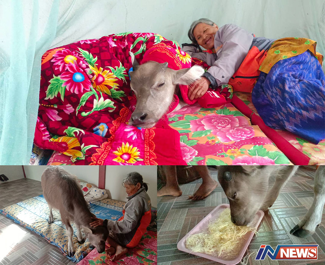 คนชัยภูมิทึ่ง!ควายน้อยแสนรู้นอนห่มผ้า แถมขอนอนมุ้งหลังเดียวกับคนด้วย