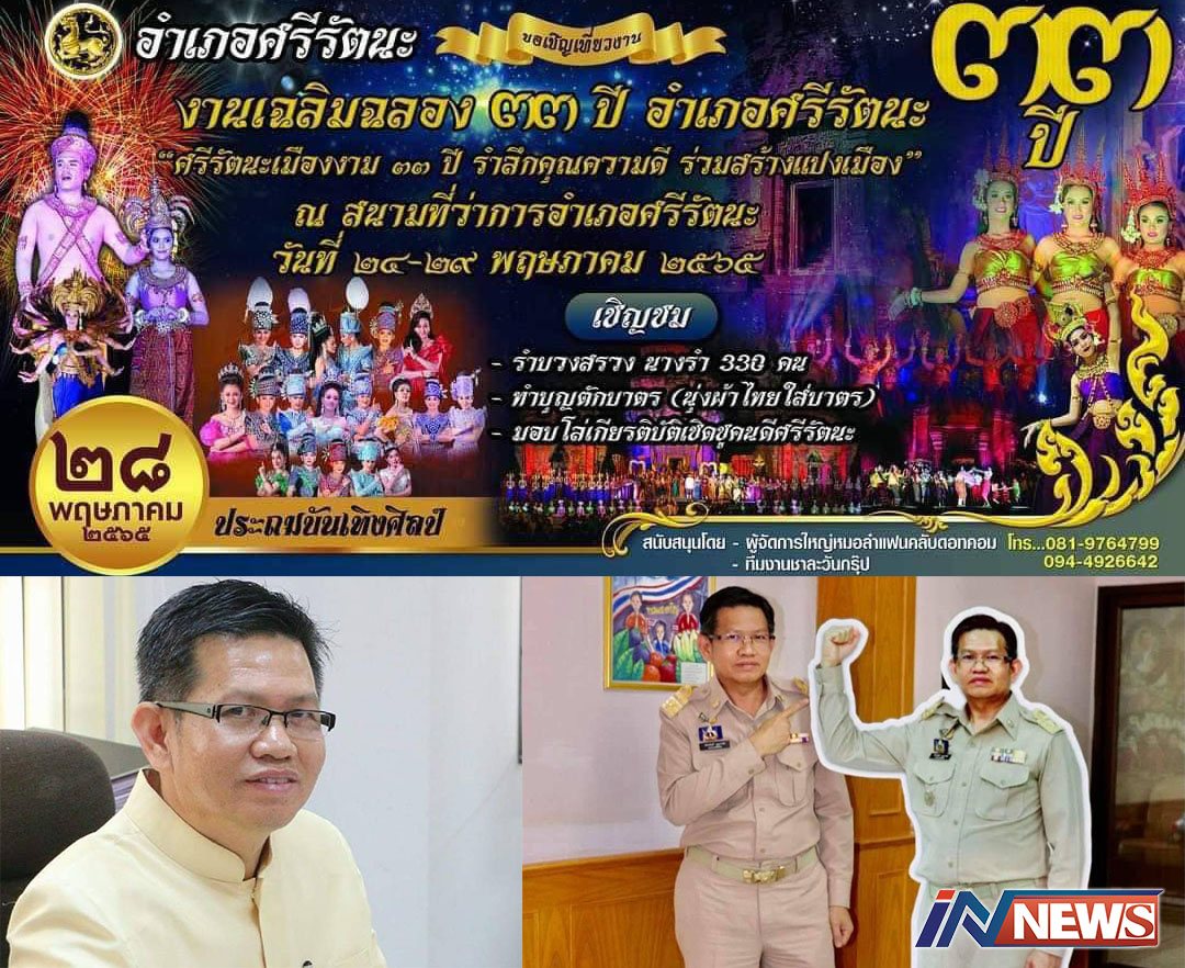 ศรีสะเกษ-นอภ.ศรีรัตนะ เชิญเที่ยวงานฉลองครบรอบ 33 ปี ศรีรัตนะเมืองงาม รำลึกคุณความดี ร่วมสร้างบ้านแปงเมือง 24-29 พ.ค. นี้...