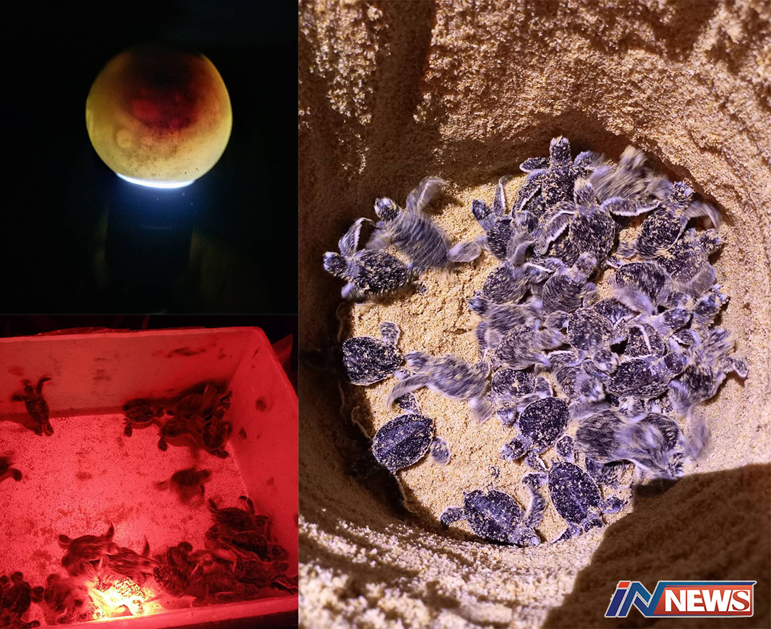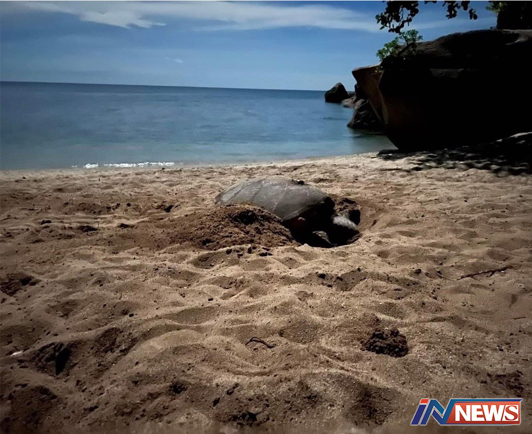 พบเต่าตนุน้อยวางไข่ในเขตอุทยาน42ตัว หลังจากแม่เต่าแอบมาวางไข่เมื่อมี.ค.65