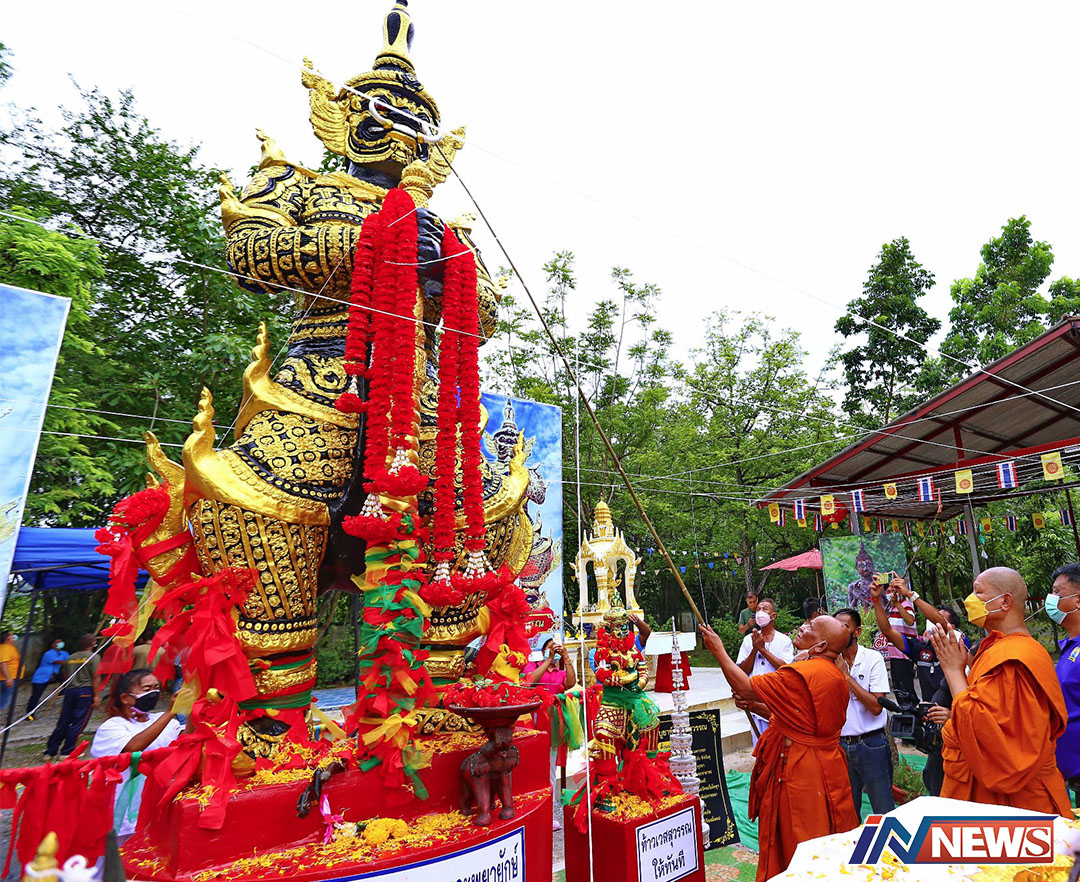 ชาวชลบุรีแห่ร่วมพิธีบวงสรวงเบิกเนตร 'ท้าวเวสสุวรรณ'วัดเขาชีจรรย์จ.ชลบุรี