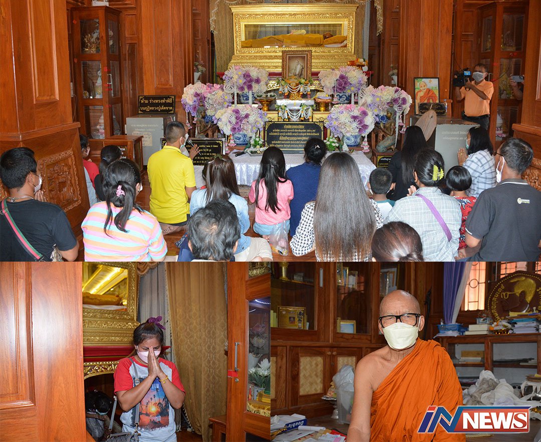 นทท.ลอดใต้โลงแก้วหลวงปู่สรวงขอพร ก่อนเดินทางกลับหลังหยุดยาวหลายวัน