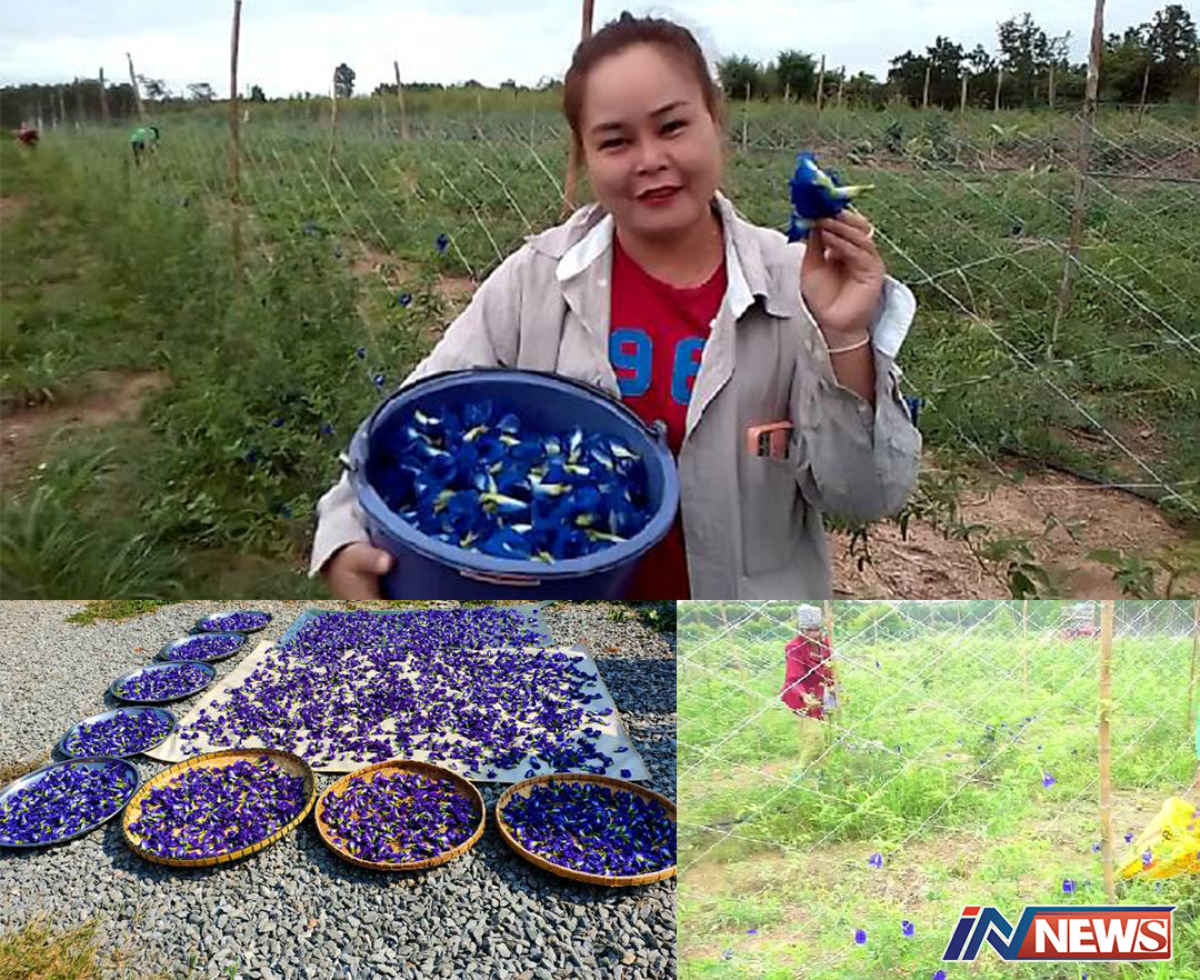 สาวเสริมสวยปลูกดอกอัญชันเสริมรายได้ ขายได้กิโลกรัมละ200บาทรับซื้อไม่อั้น