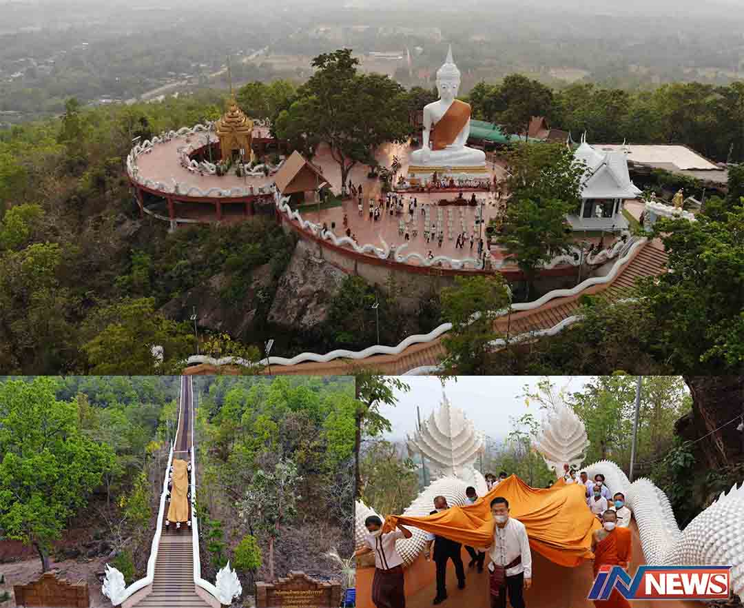 ชาวพุทธกาฬสินธุ์แห่ผ้าขึ้นภูสิงห์654ขั้น ถวายผ้าอังสะมงคลสงกรานต์ยอดเขาสิงห์
