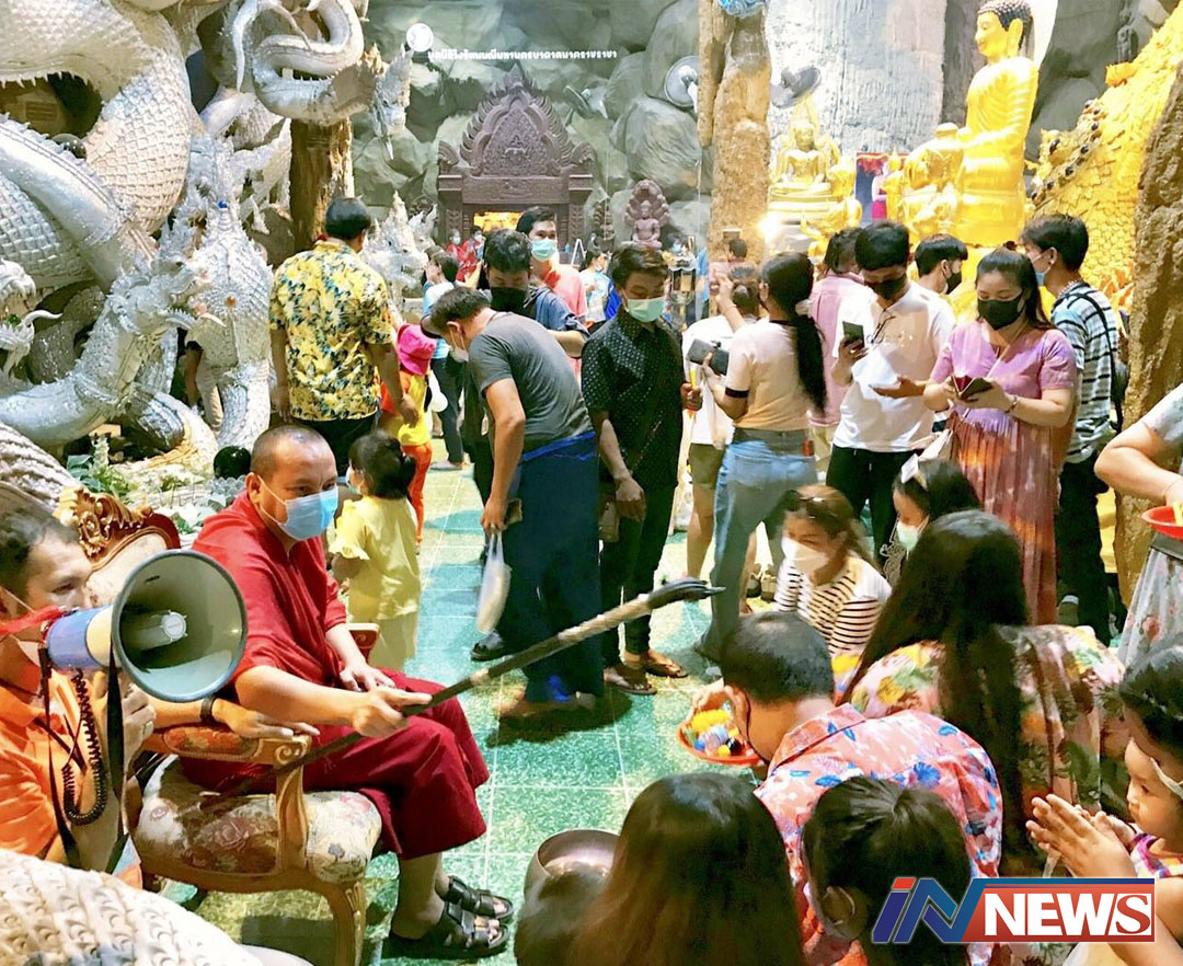 วันหยุดสงกรานต์คนแห่งส่องอ่างน้ำมนต์ ขอโชคลาภอาศรมฤาษีเณรฯ-ปทุมธานี
