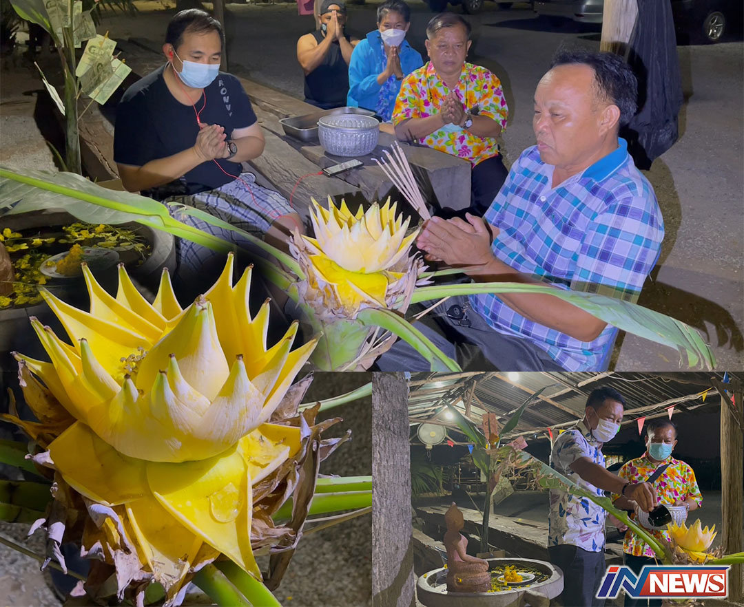 หนองบัวลำภู-ชาวบ้านแตกตื่นแห่ชมต้นกล้วยออกดอกคล้ายดอกบัวคนโบราณเชื่อว่าจะนำโชคมาให้ผู้ที่พบเห็น