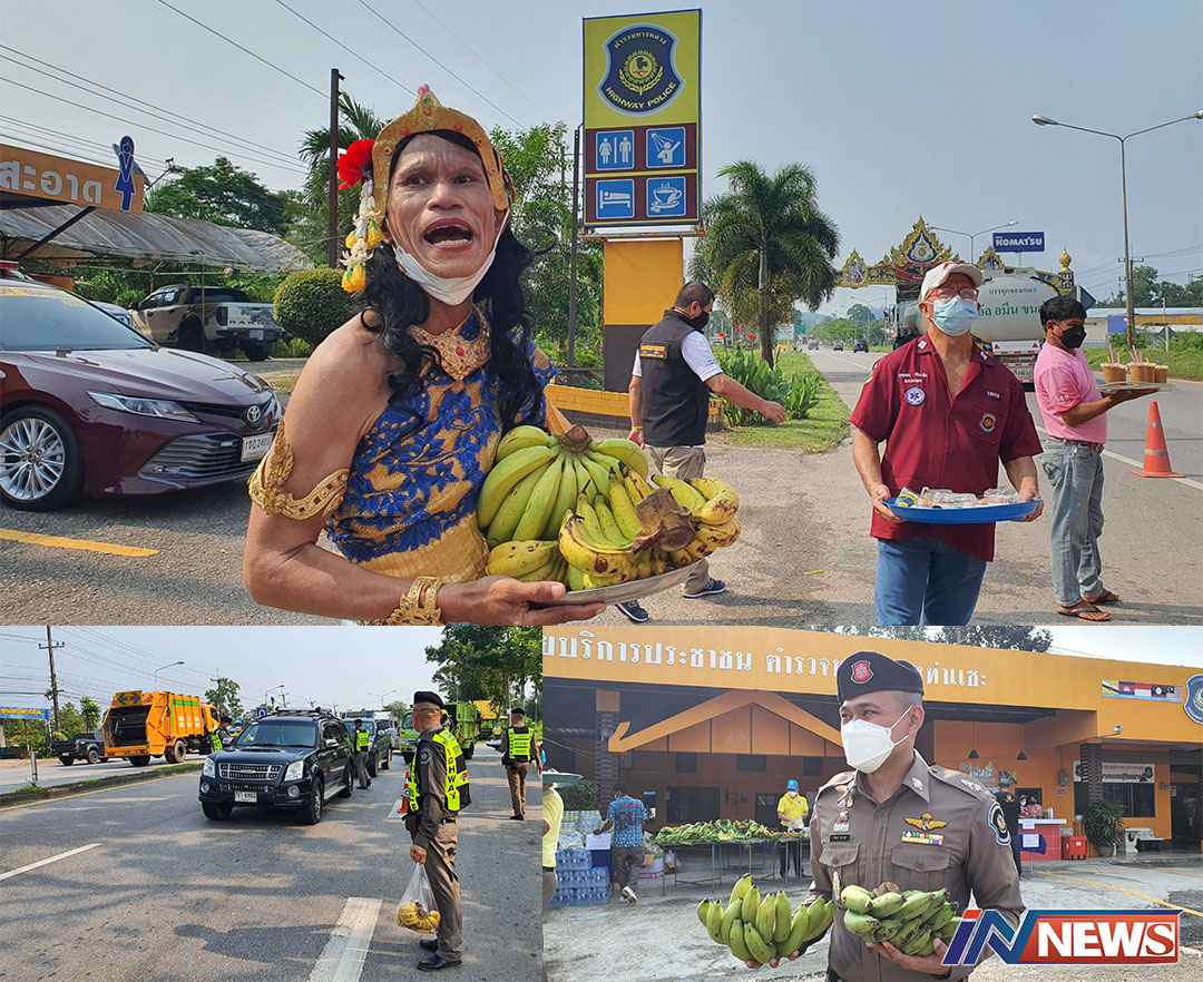 สีสัน!ตร.ชุมพรแต่งชุดนางฟ้าแจกกล้วย ให้กับปชช.เดินทางกลับในช่วงสงกรานต์