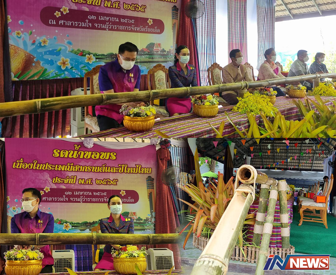 สีสันรดน้ำดำหัวพ่อเมืองร้อยเอ็ดเด็ดสุดๆ 'แข็ง-ใหญ่-ยาว'ธารน้ำไม้ไผ่ถึงมือผู้ว่าฯ