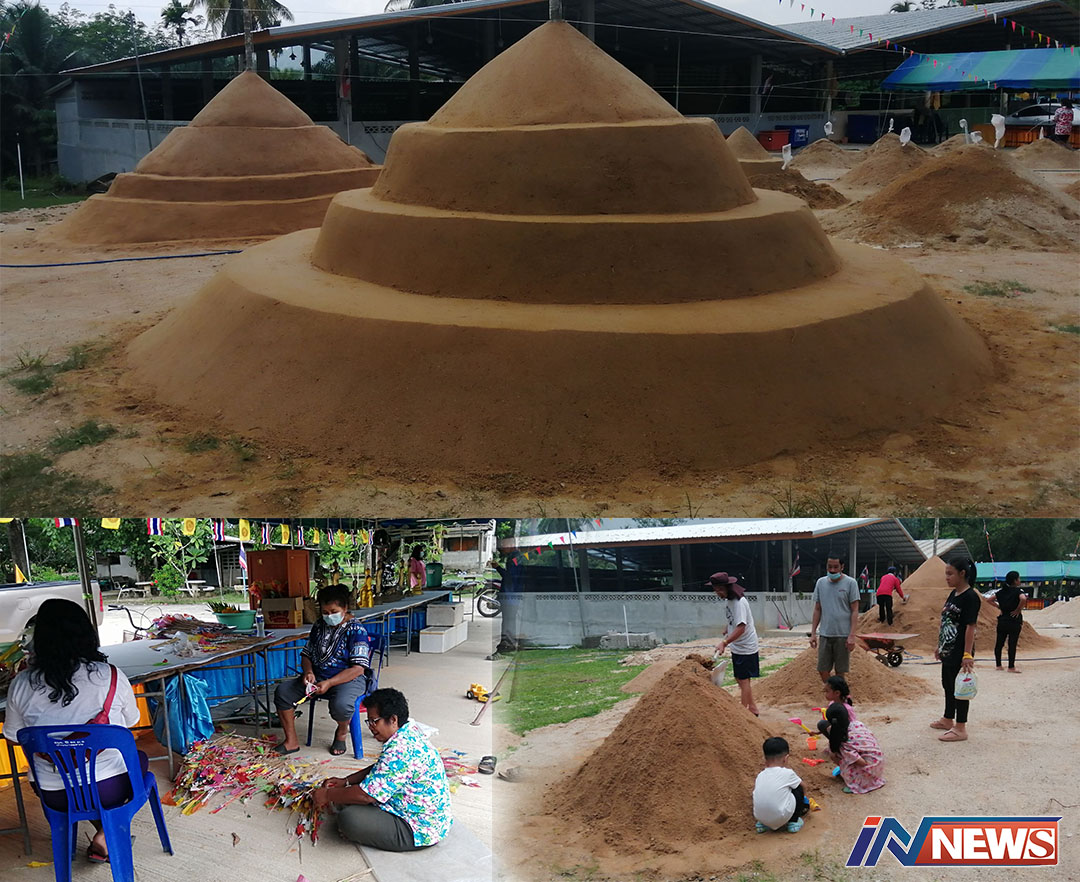 ชาวตะกั่วป่าเข้าวัดรวมพลังก่อเจดีย์ทราย ทำบุญเทศกาลสงกรานต์12-14เม.ย.นี้
